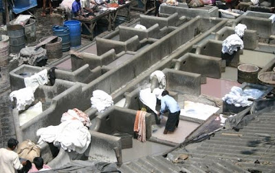 Ini adalah Ghats dhobi, Tempat cucian terbesar Mumbai di mana ribuan orang membersihkan ribuan pakaian sehari-hari. Banyak orang di India menggunakan jasa ini di mana orang-orang ini (dhobi, seorang tukang cuci tradisional) yang mengumpulkan, membersihkan & menyetrika pakaian di tempat seperti ini. Orang-orang ini tinggal & bekerja di sini. Kemudian dilanjutkan oleh generasi berikutnya. Jika Anda ingin cucian Anda mencuci pakaian di India, ingatlah bahwa kemungkinan besar anda akan pergi ke satu tempat tersebut.